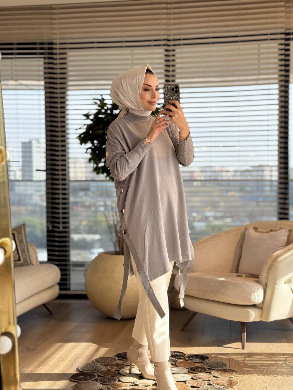 7011 Dicle Yanları Düğmeli Tunik Gri
