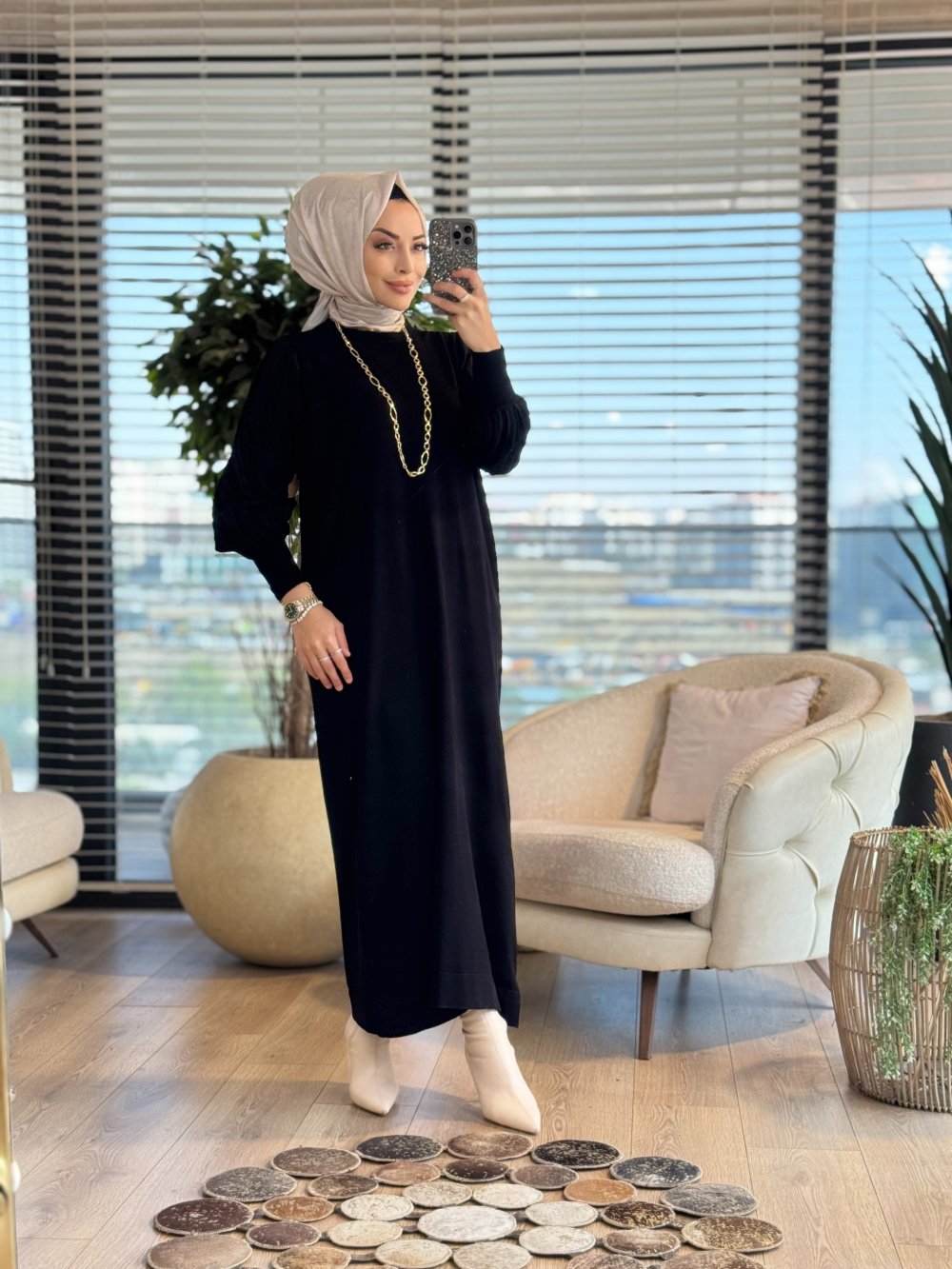 7046 Kolları Piliseli Simli Vanezia Elbise Siyah