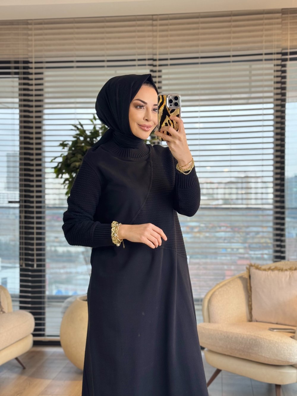 7187 Nokta Örgü İki İplik Elbise Siyah
