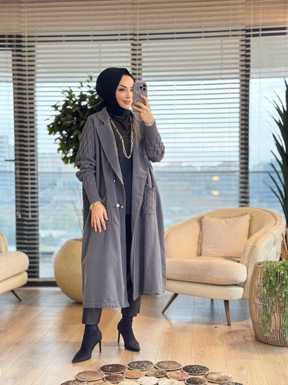 7201 Altı Düğmeli Trikolu İki İplik Kaban Antrasit
