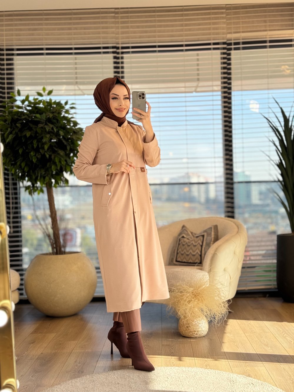 7235 Bel Parça Detaylı Ön Çıtçıtlı Kap Bej