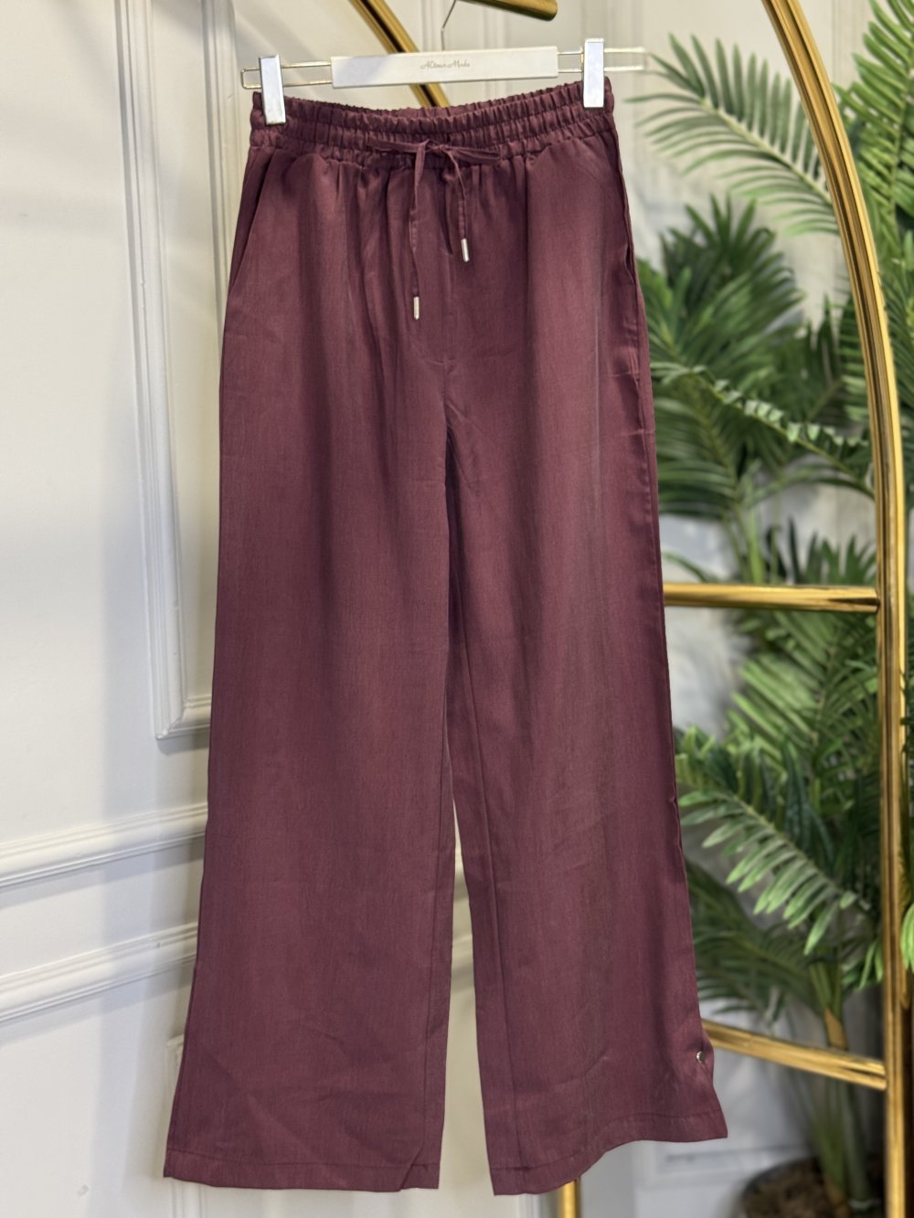 7272 Beli Lastikli Bol Paça Pantolon Bordo