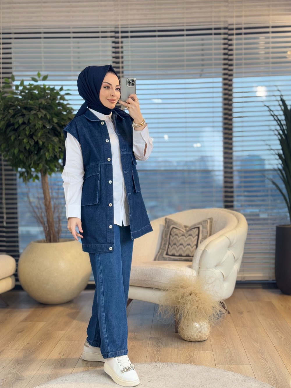 7286 Ön Büyük Cepli Kot Yelek Lacivert