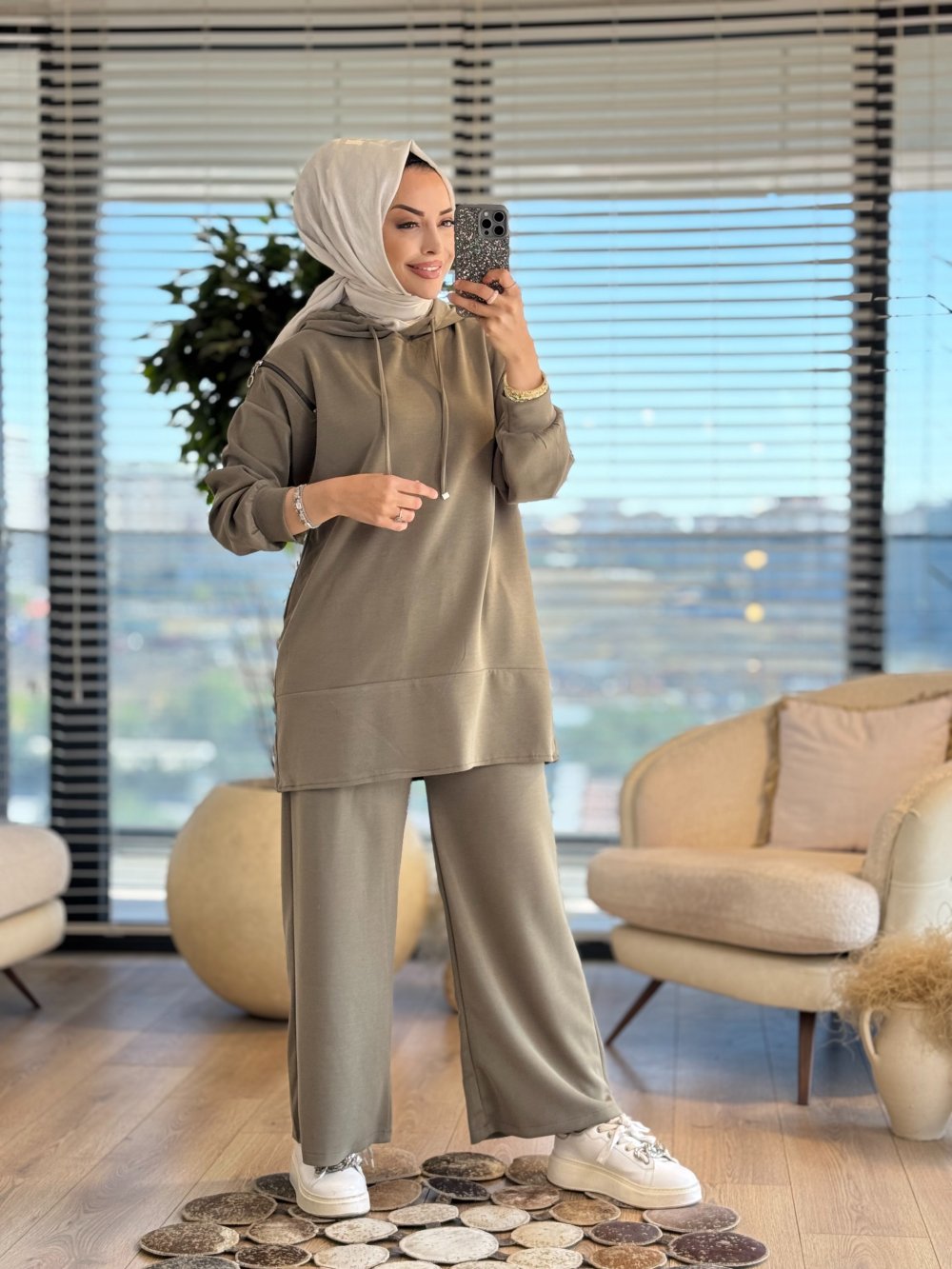 7409 Sol Omuzu Fermuar Detaylı Takım Haki