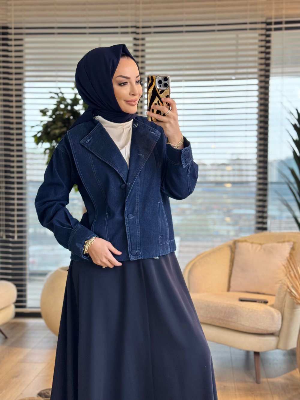 7440 Kot Ön Parça Detaylı Yakasız Ceket Mavi