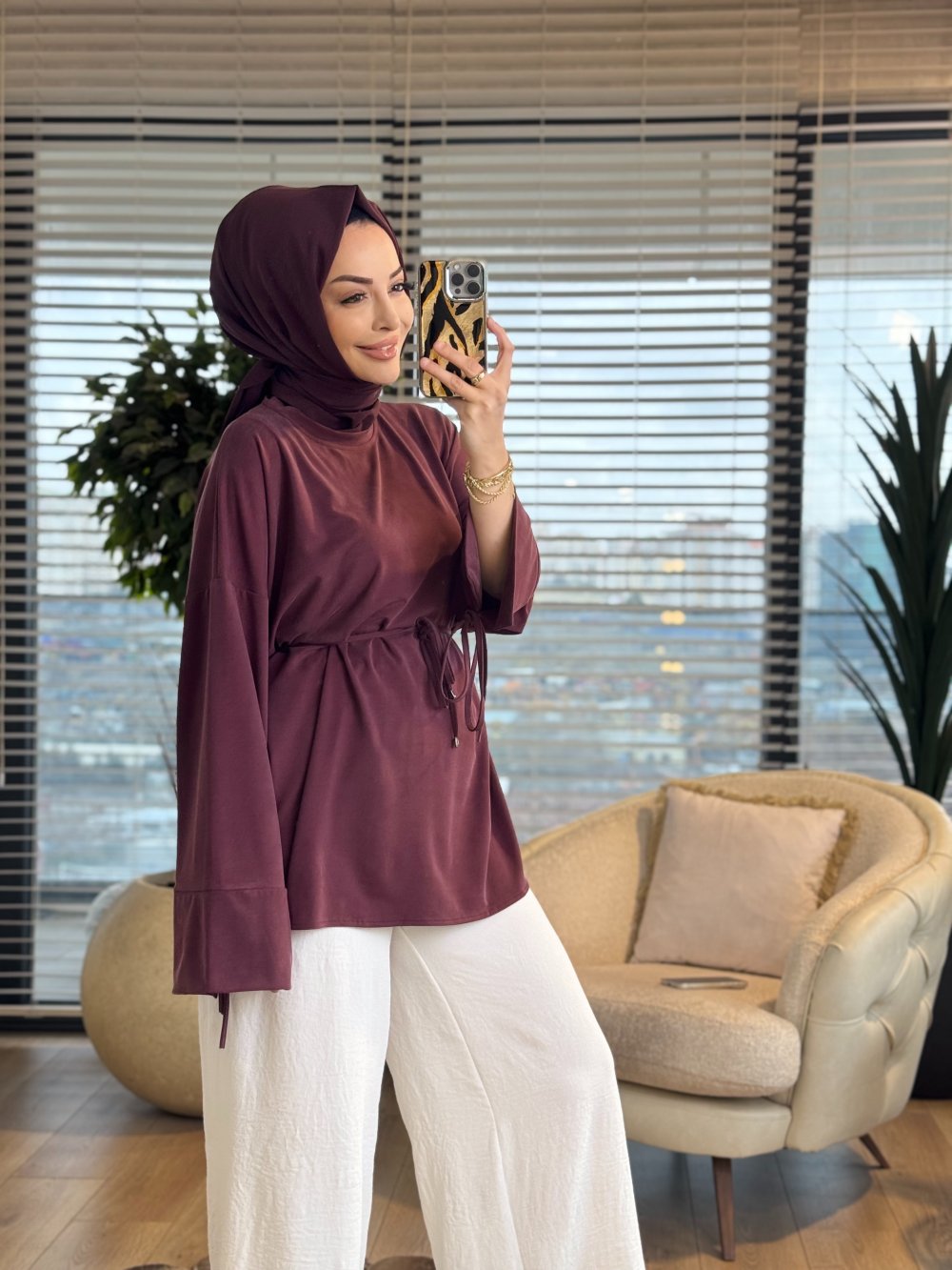7465 Oysho Kolları Bağcıklı Tunik Bordo