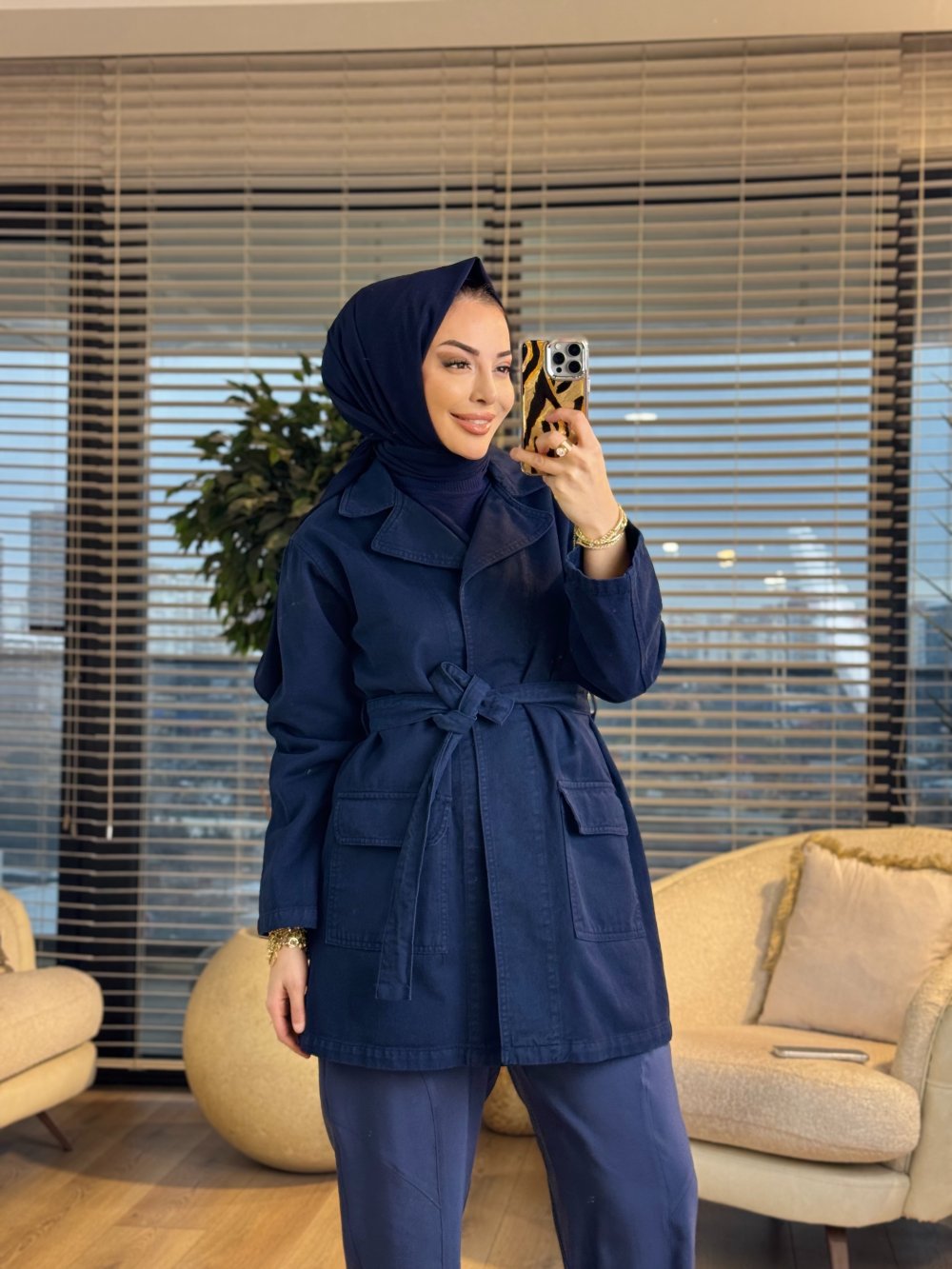 7507 Şal Dügmesiz Kot Trenç Lacivert