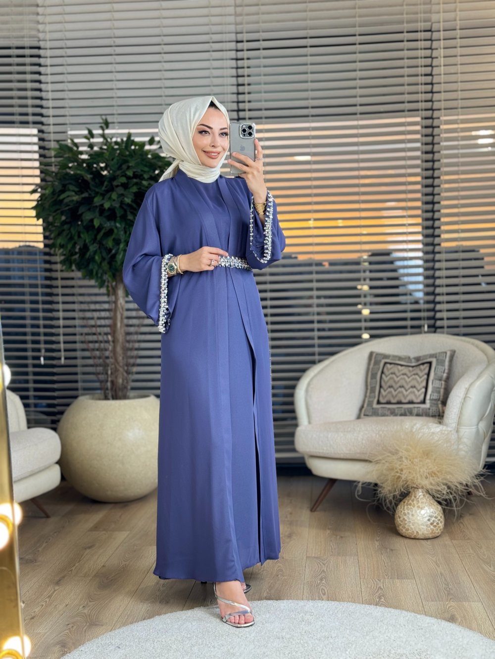 8050 Kolları Ve Kuşağı Taş Detaylı İkili Takım İndigo