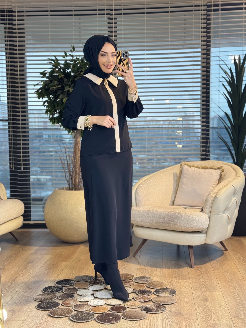 8211 Patı Şerit Detaylı Broşlu Takım Siyah