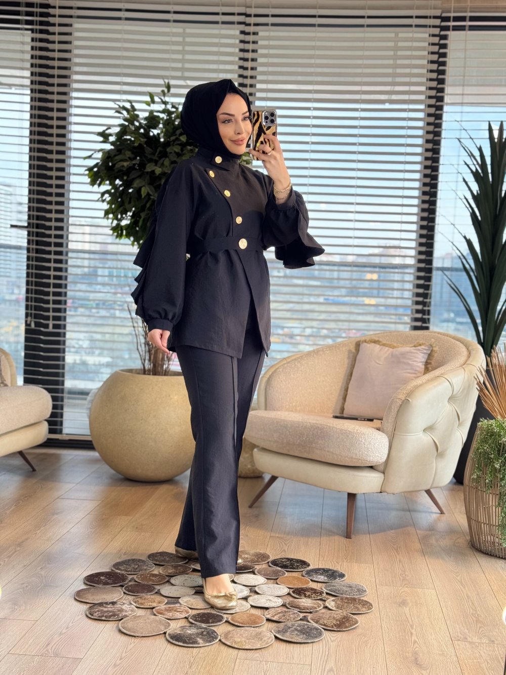 824 Ön Üçgen Parça Gold Düğmeli Takım Siyah