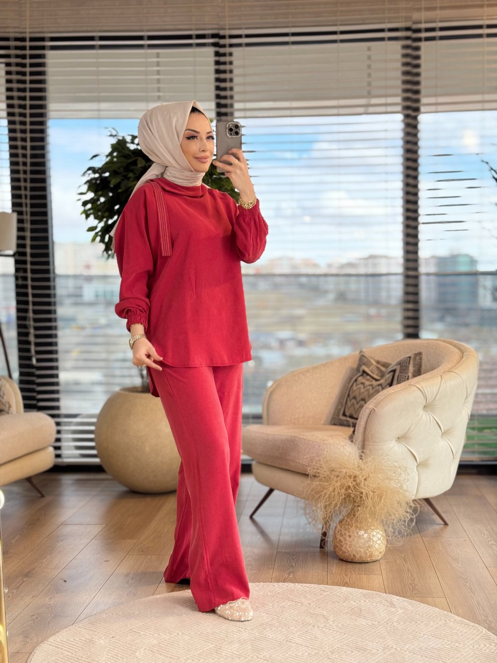 8489 Devrik Yaka Yaka Bağlamalı Takım Kırmızı