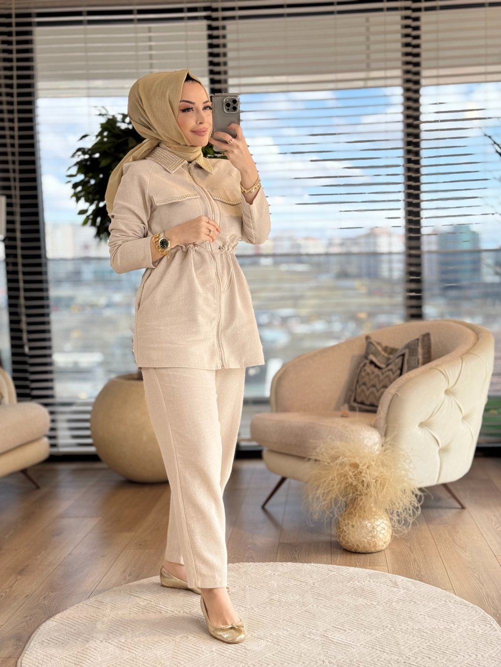8518 Yaka Cep Kapağı Zımbalı Takım Kahve