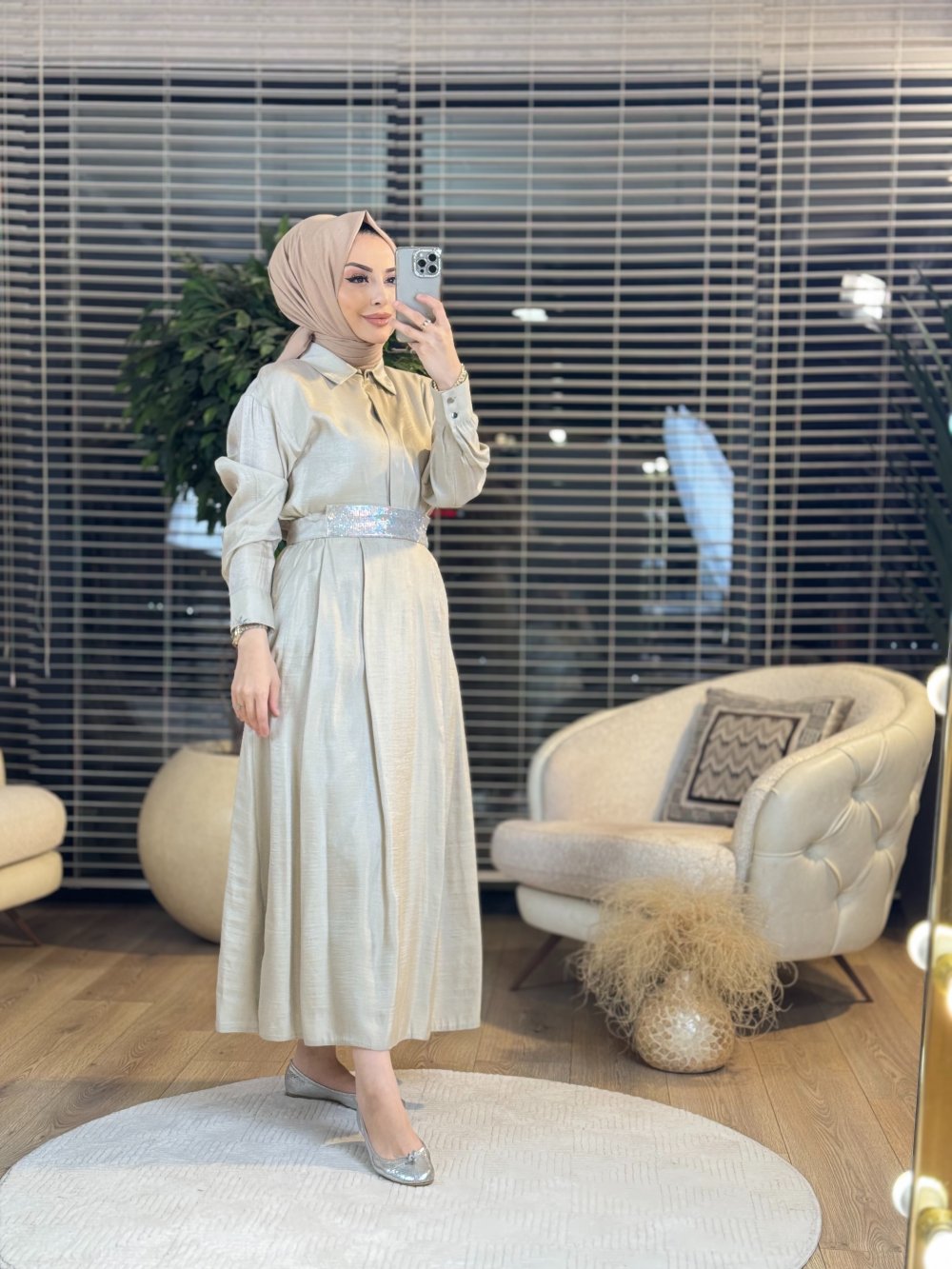 8520 Etek Beli Taş Kemerli Takım Siyah