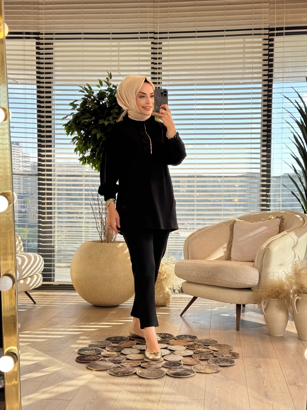8567 Yaka Ve Patı Fırfırlı Takım Siyah