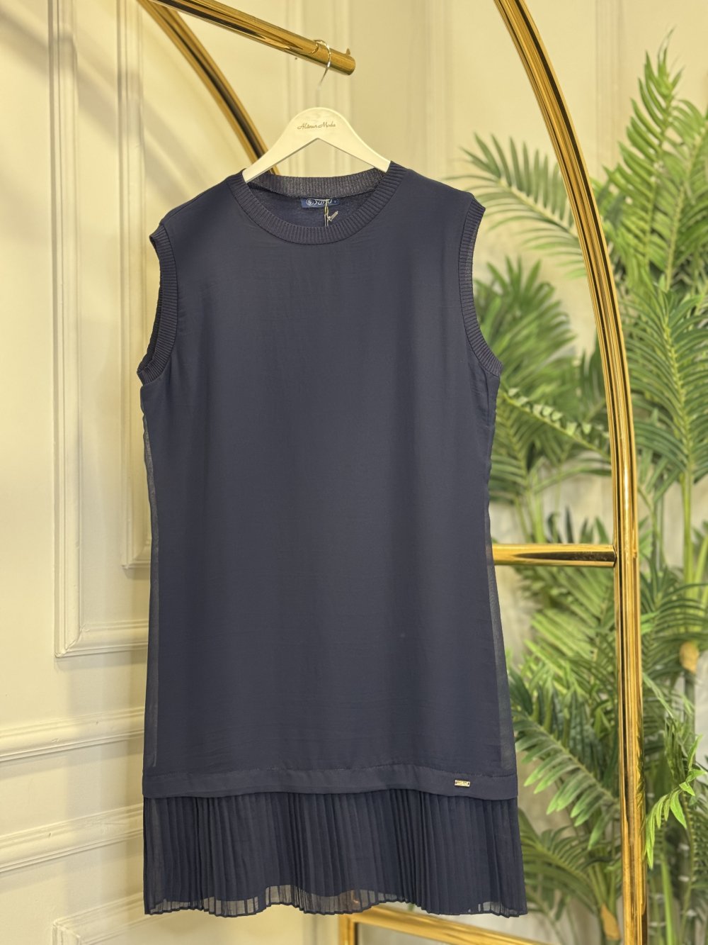 876 Önü Şifon Altı Piliseli Kolsuz İçlik Lacivert