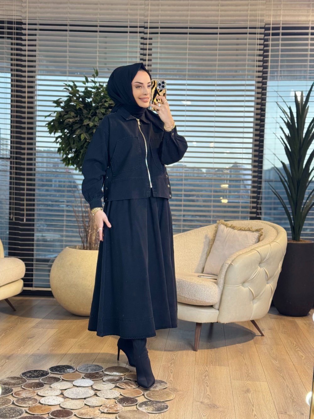 8887 Tencel Ferm. Yandan Düğmeli Etek Takım Siyah