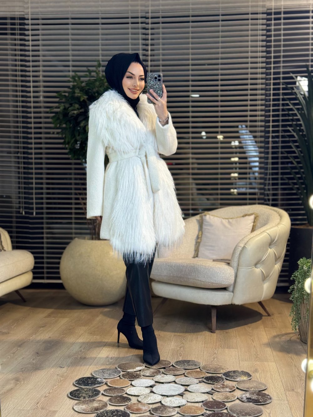 9074 Tüy Detaylı Uzun Kollu Kaban