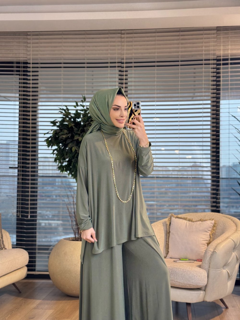 Tunik ön boy 73 cm, arka boy 79 cm, pantolon boy 101 cm