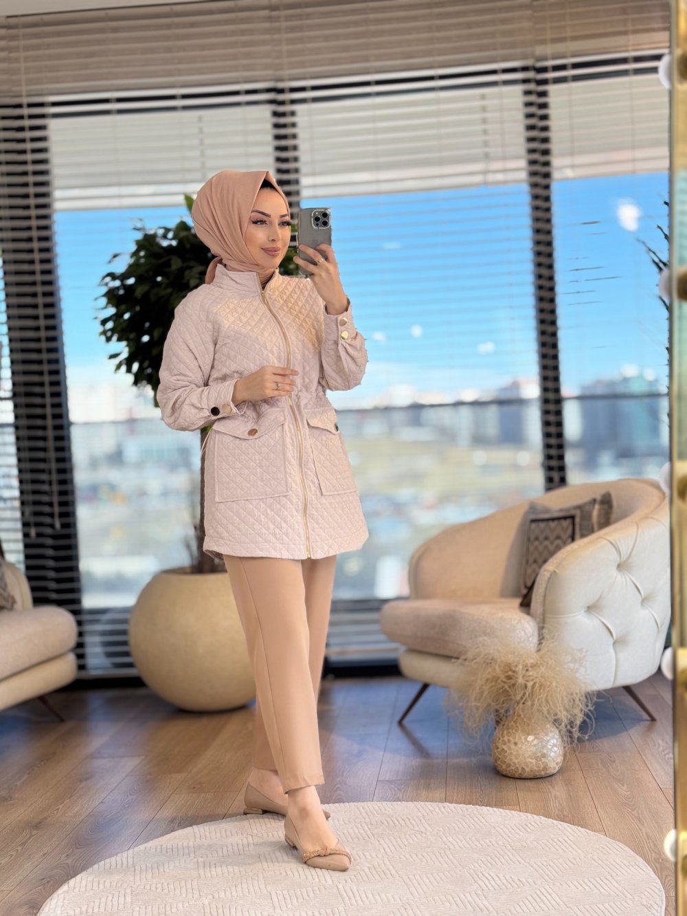 9251 Kapitone Üstü Varak Baskı Fermuarlı Kap Taş