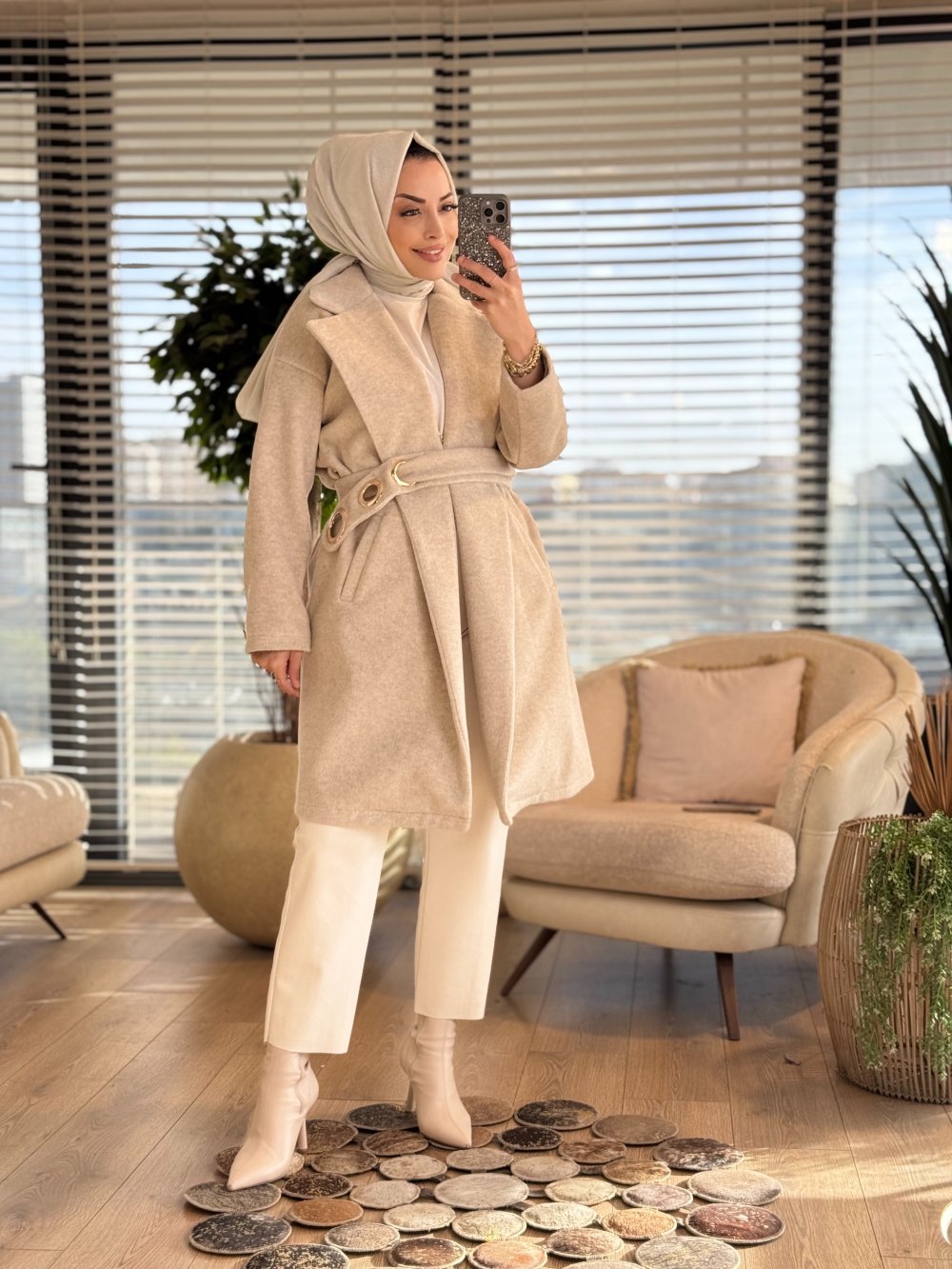 9284 Kemeri Büyük Kuşgözlü Kaşe Kaban Bej