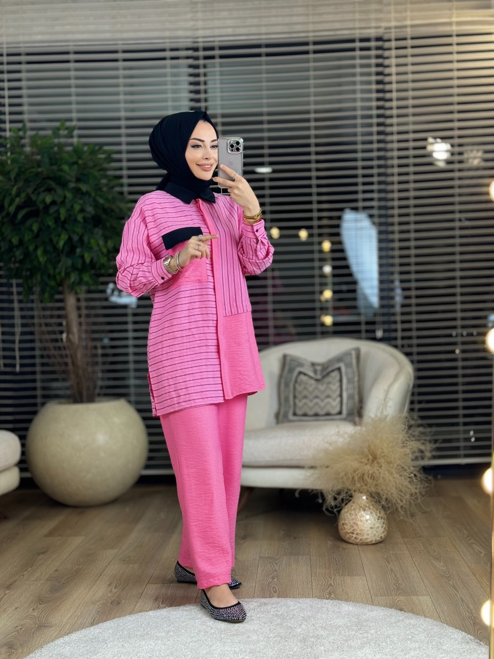 9657 Çizgi Parçalı Takım Pembe