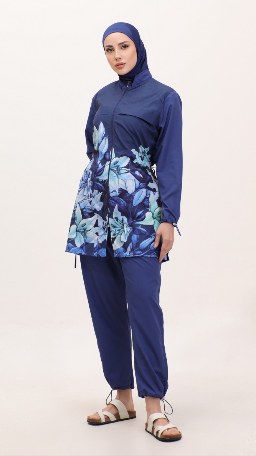 9909 Çiçekli Tesettür Mayo Lacivert