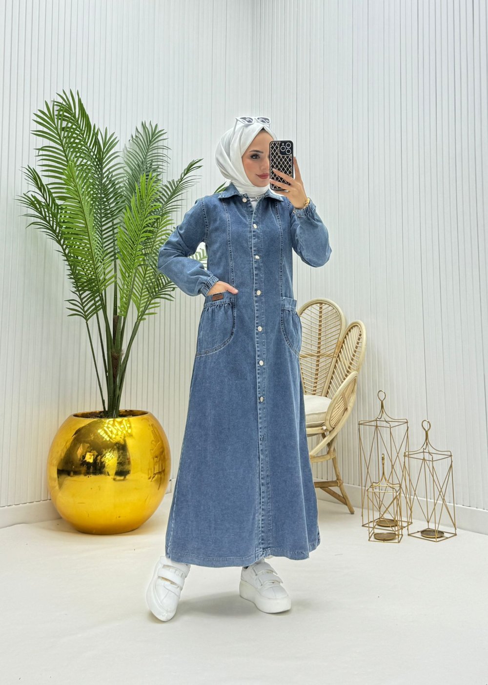 Ürünün Beden Aralığı ;36-38-40-42-44-46 Ürünün Kumaşı ;1. Sınıf yıkama kot kumaştan imal edilmiştir Ürünün Boyu ;130-135 cm önden düğmeli yanlardan cepli Mankenin giydiği beden 38 bedendir Mevsimlik kullanima uygundur Ürün renginde konsept çekimlerinden dolayı ton farklılığı