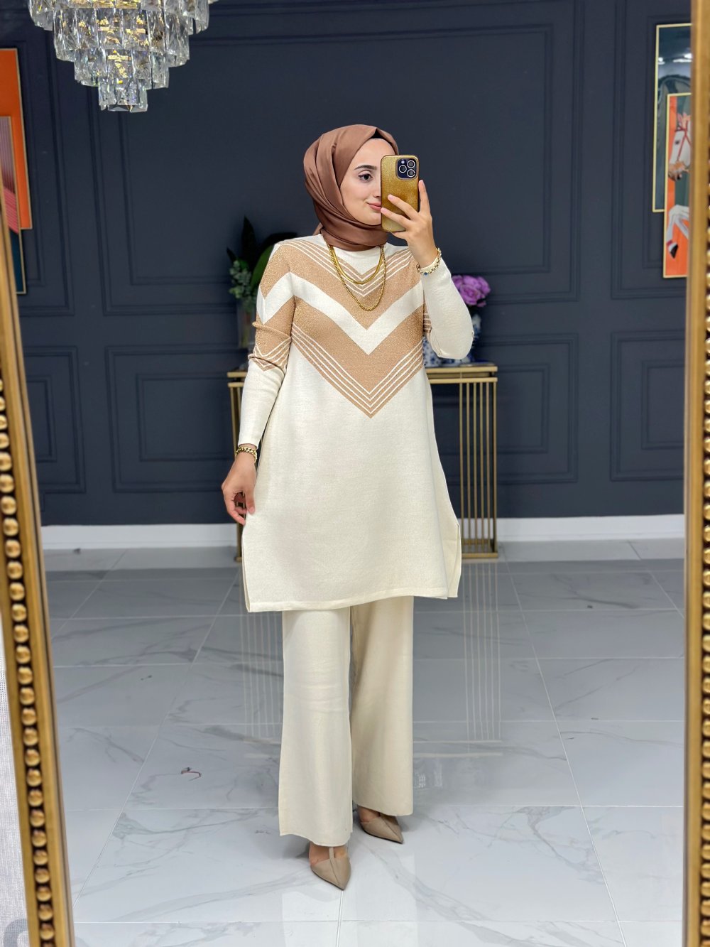 Ahlam şık triko takım - bej