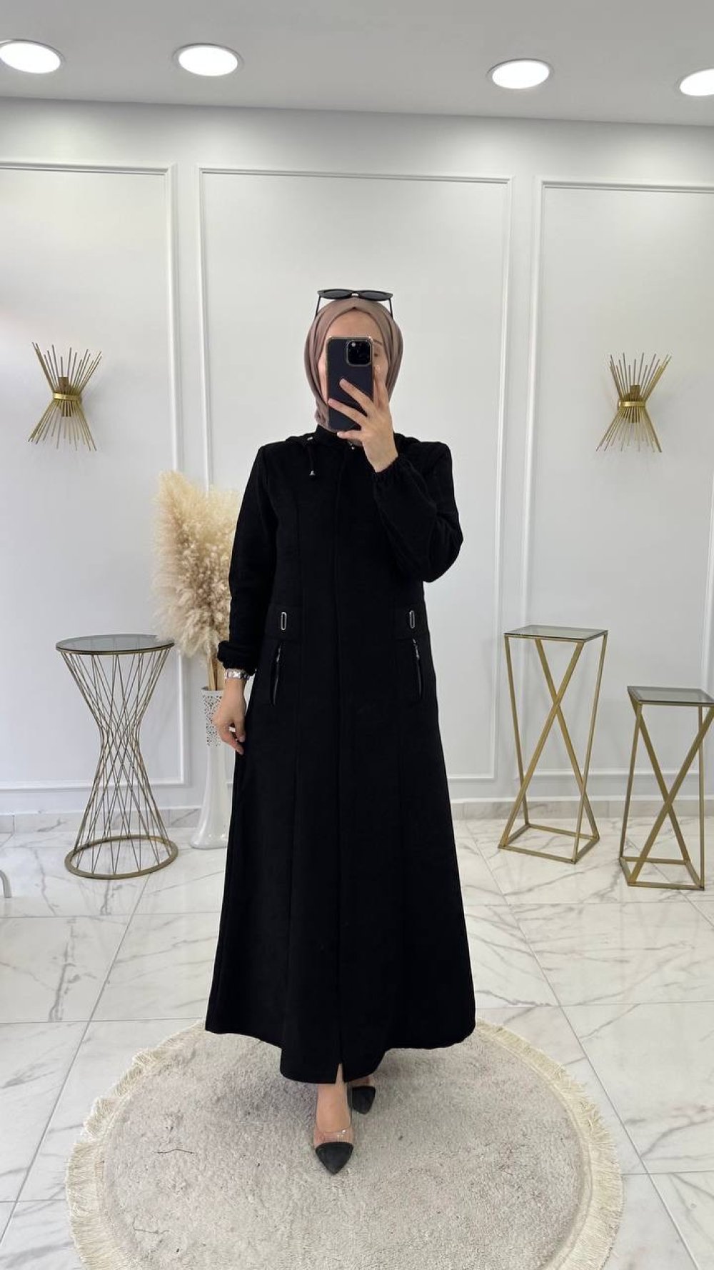 Boydan fermuarlı, cepleri de fermuarlı ve çıkarılabilir kapşonludur