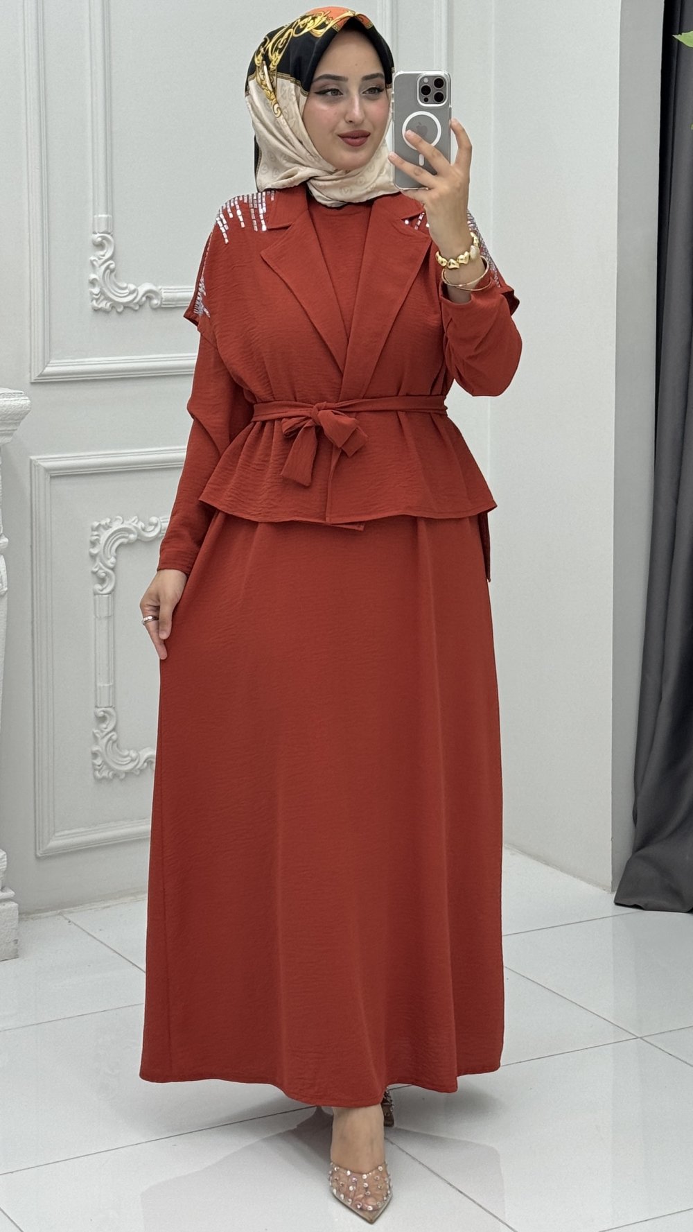 Alara Elbise, hem iş hem de günlük hayatınızda rahatlıkla tercih edebileceğiniz çok yönlü bir parçadır. Şıklığı konforla buluşturan bu tasarım, sezonun en gözde modellerinden biri olacak!