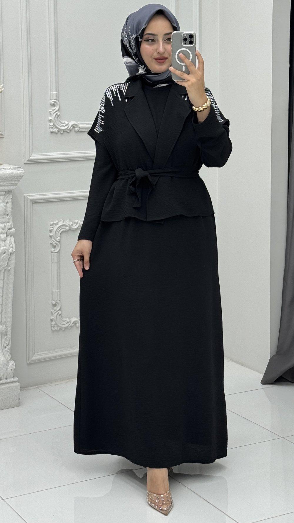 Alara Elbise, hem iş hem de günlük hayatınızda rahatlıkla tercih edebileceğiniz çok yönlü bir parçadır. Şıklığı konforla buluşturan bu tasarım, sezonun en gözde modellerinden biri olacak!