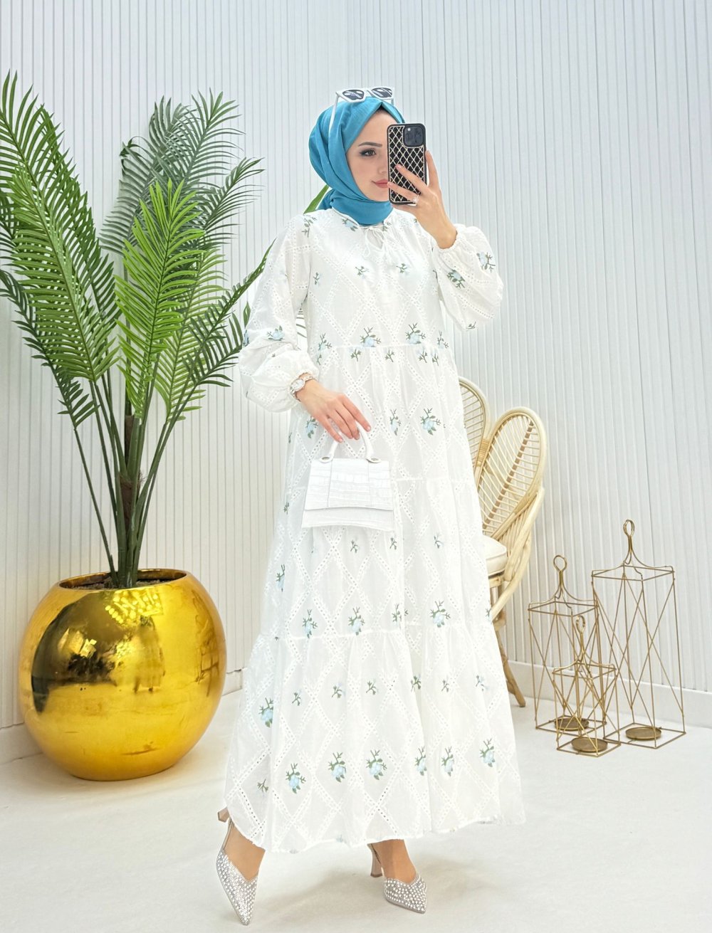 Ürün Beden Aralığı ;36-38-40-42-44-46 Ürünün Kumaşı ;1.sınıf fisto dantel kumaş üzeri nakışlı Ürünün Boyu ;130/135 cm Mankenin giydiği beden 38 bedendir Mevsimlik kullanima uygundur Ürün renginde konsept çekimlerinden dolayı ton farklılığı olabilir