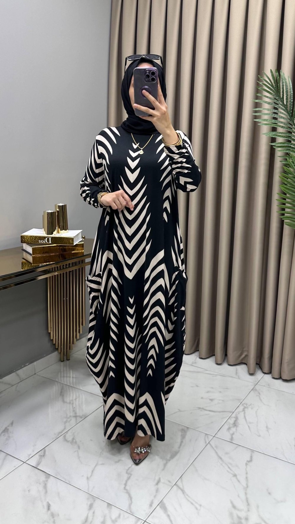 Alev Cepli Elbise Siyah