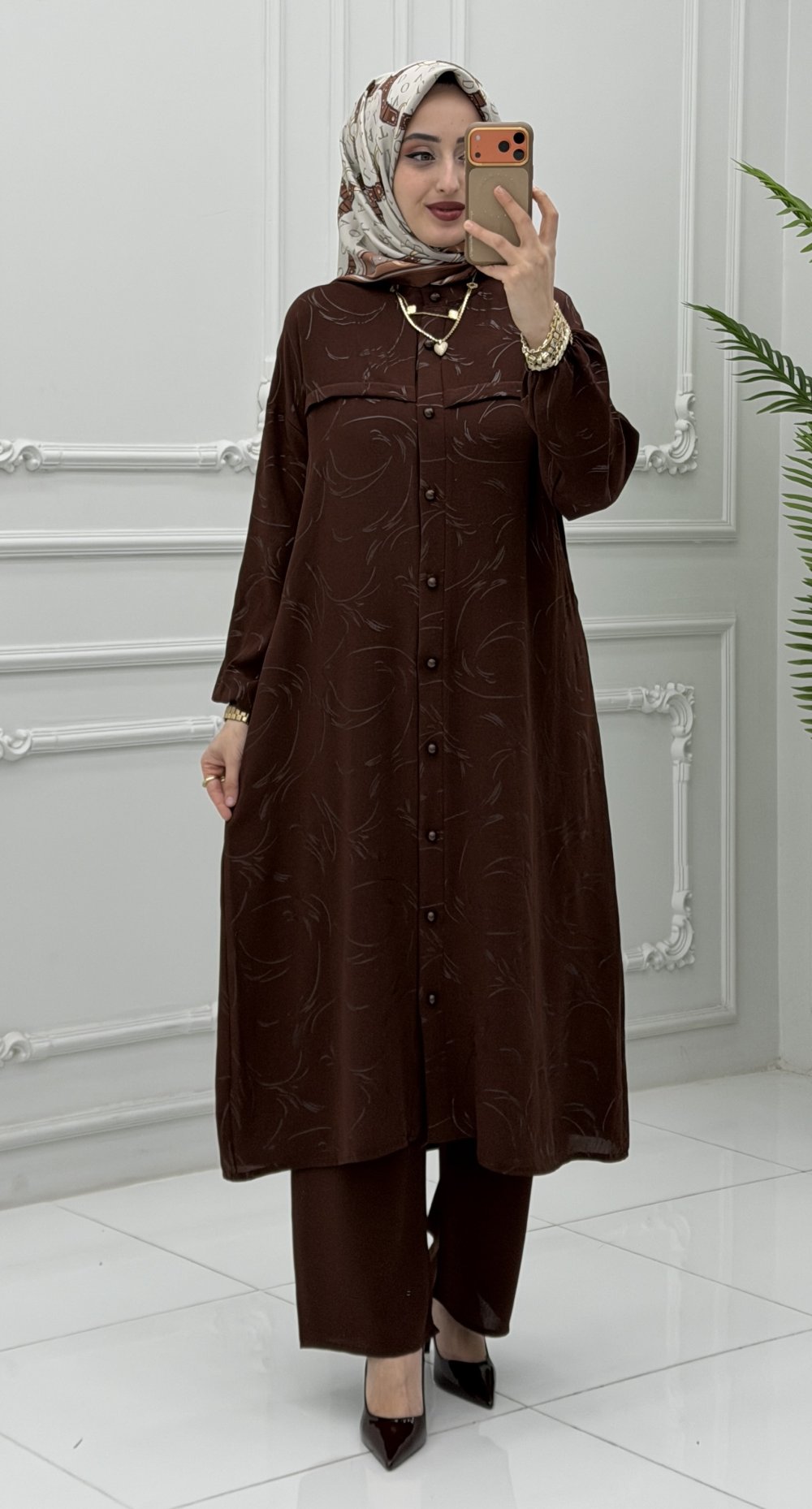 Aliye Takım, hem iş hem de günlük hayatınızda rahatlıkla tercih edebileceğiniz çok yönlü bir parçadır. Şıklığı konforla buluşturan bu tasarım, sezonun en gözde modellerinden biri olacak!