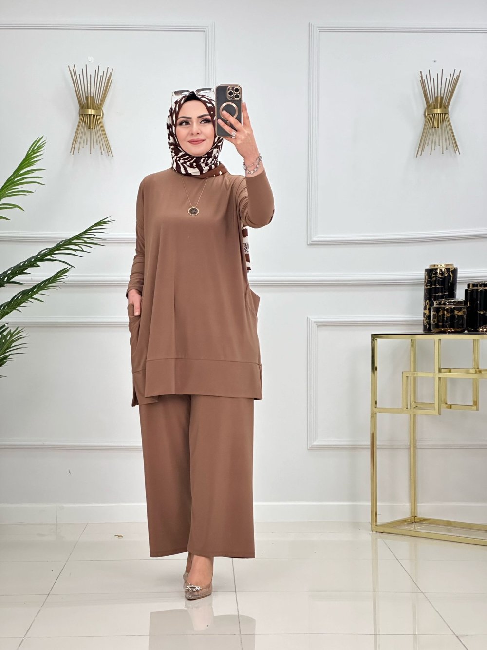 Çok sevilen kalıbı ve modeliyle sandy kumaş Almina  takım stoklarımızda...