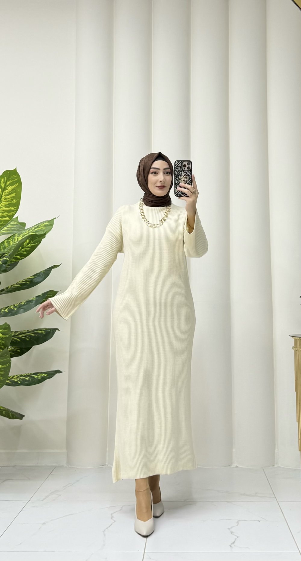 ARİA TRİKO ELBİSE Krem