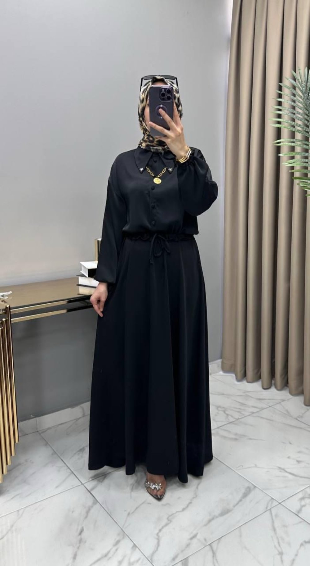 Açılabilir düğmeli, belden büzgülü üst gömlek boy 52 cm