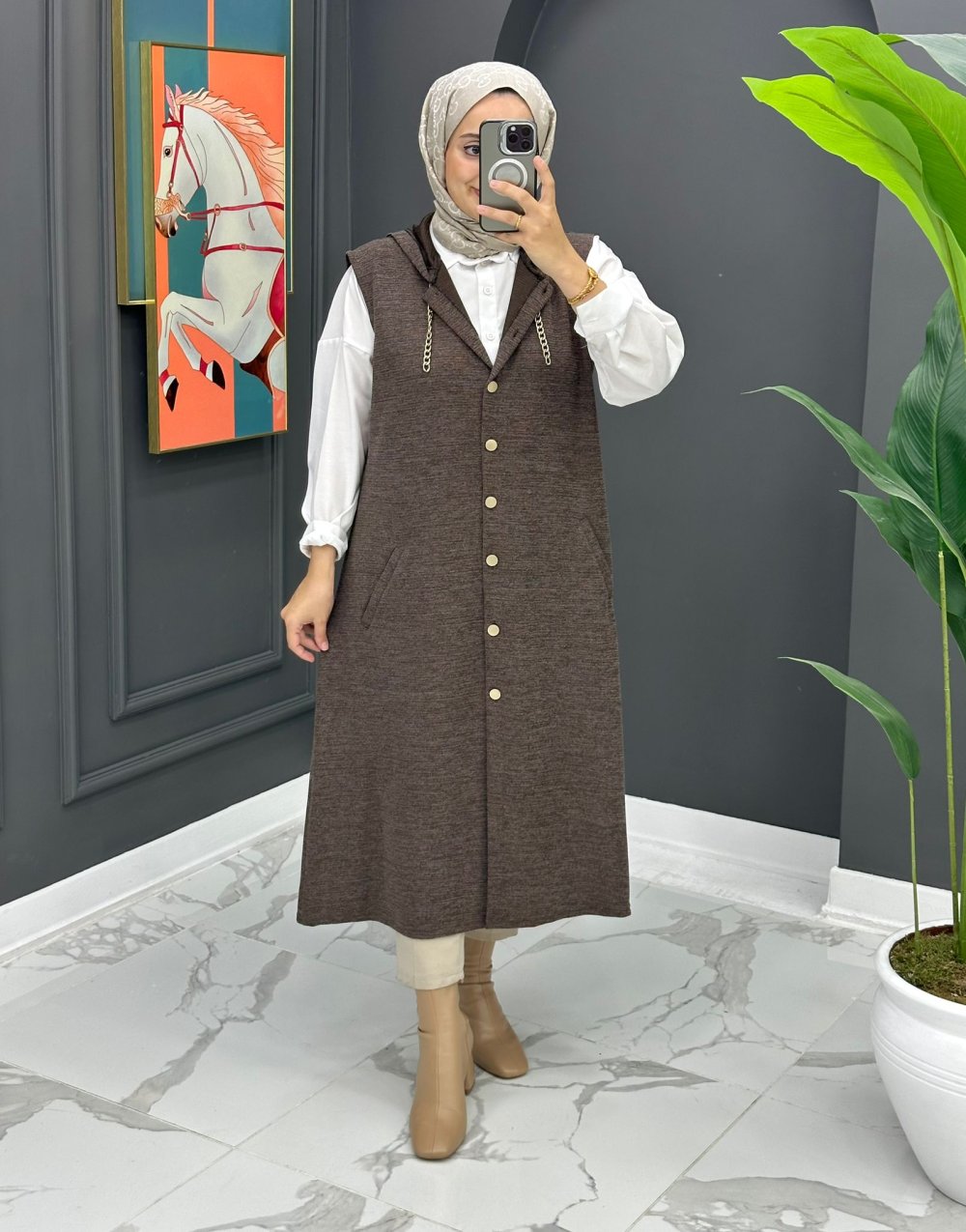Aysel Uzun Yelek - Kahve