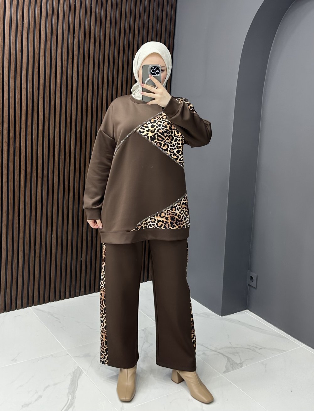 Aysira leopar takım - kahve