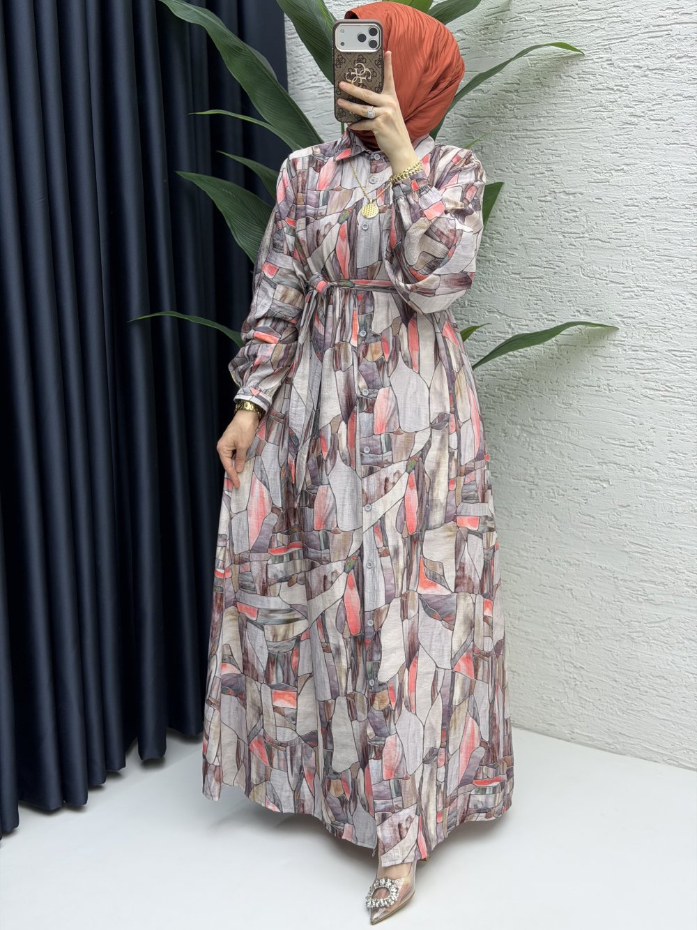 Boydan düğmeli giy çık elbisemiz en güzel deseniyle satışta