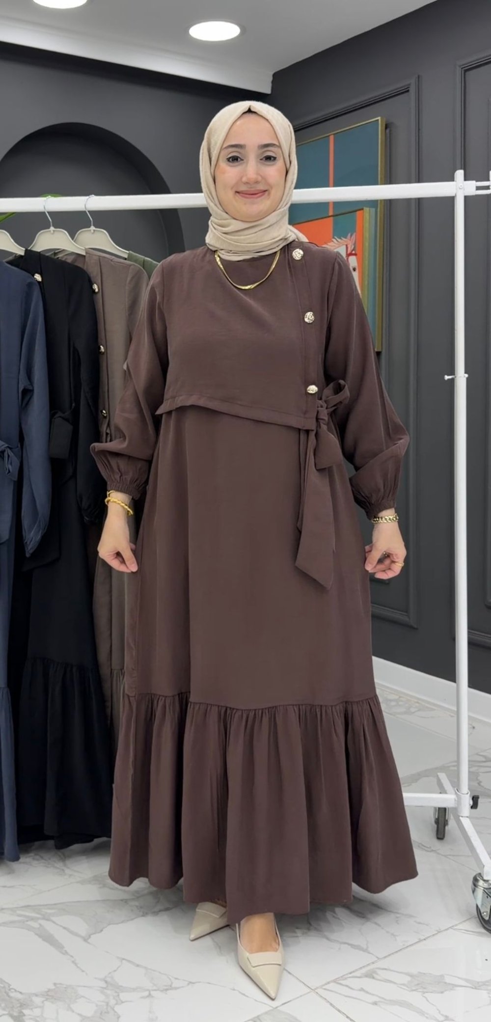 Azize Elbise - KAHVERENGİ
