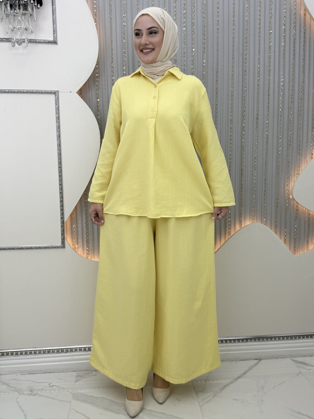 Bade pantolonlu takım Sarı