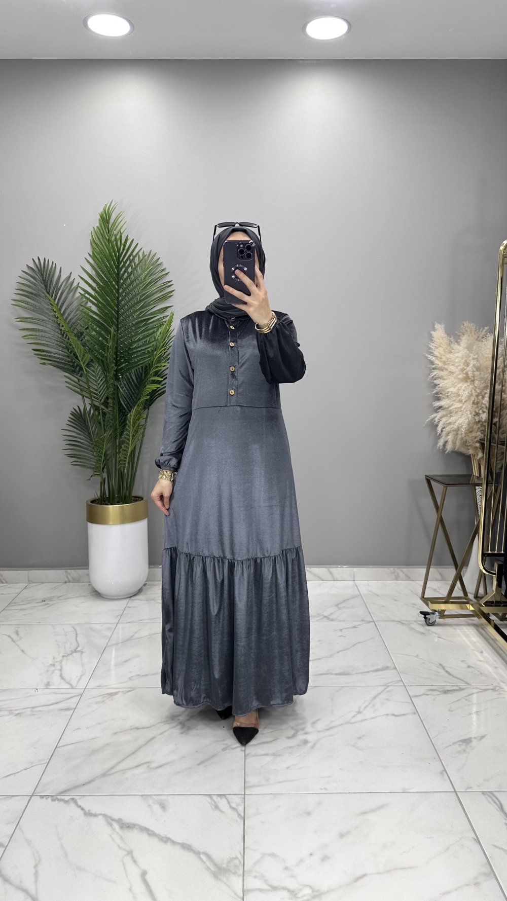 Begüm Kadife Elbise Füme