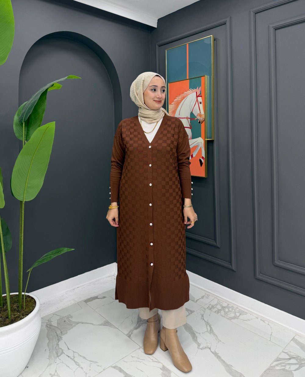 Bella Merserize Hırka - Kahve
