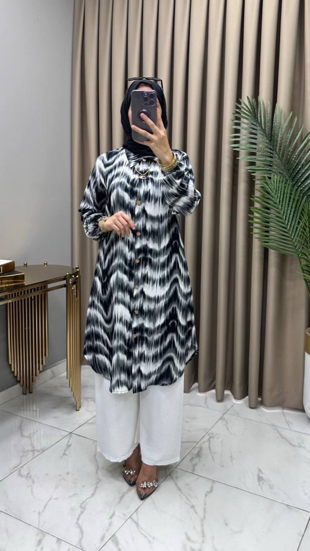 Tunik boydan komple düğmelidir,