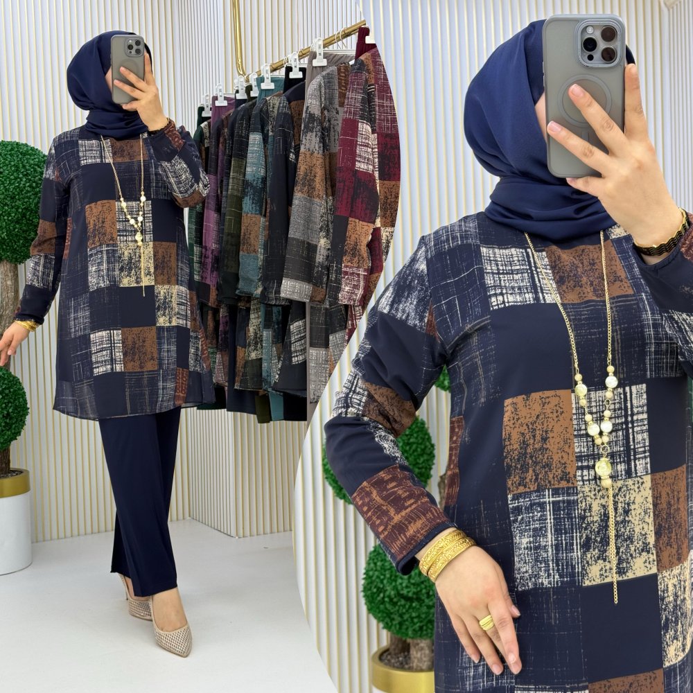 Tunik dijital baskılı şifon içi sandy kumaş