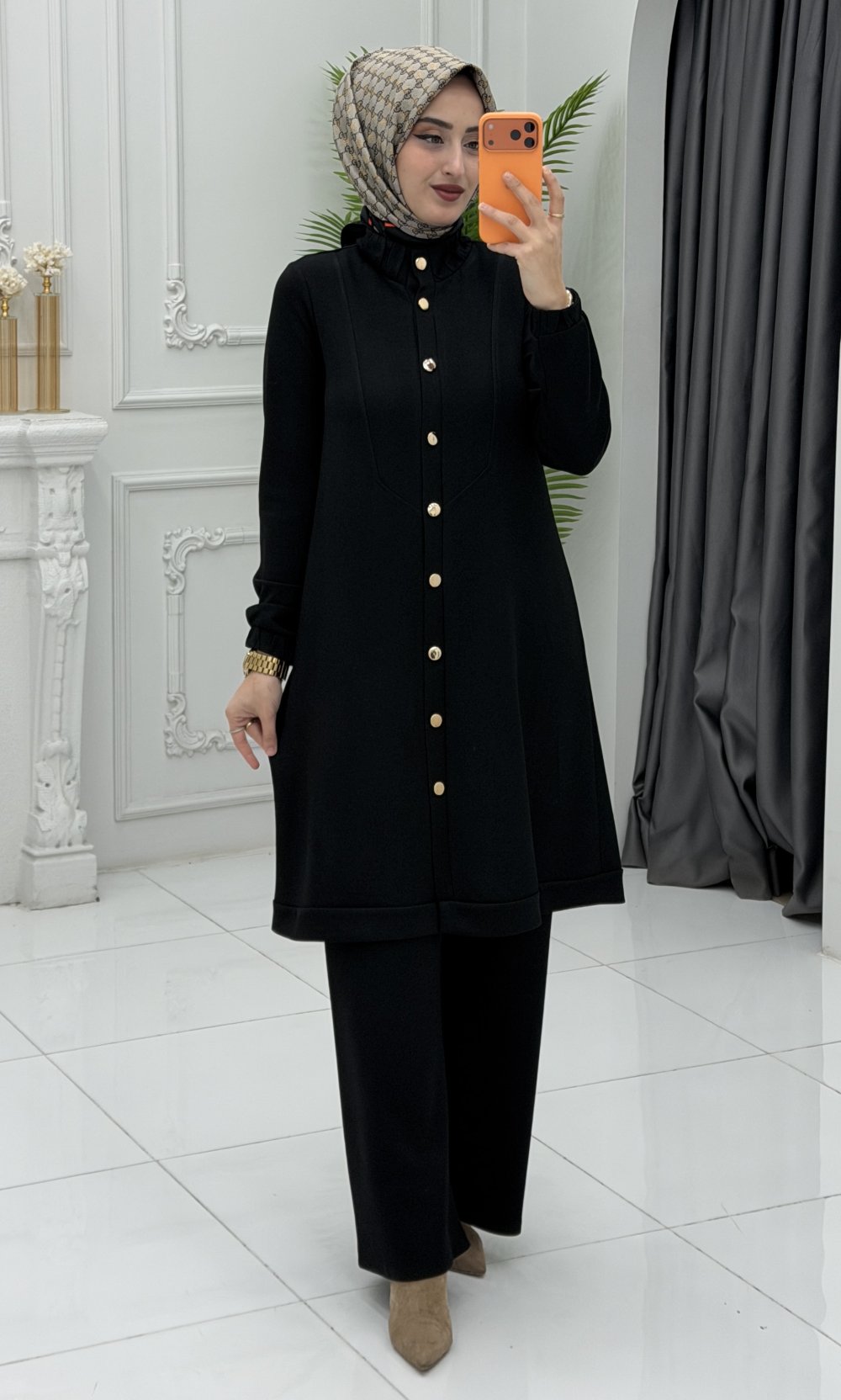 Selda  Takım, hem iş hem de günlük hayatınızda rahatlıkla tercih edebileceğiniz çok yönlü bir parçadır. Şıklığı konforla buluşturan bu tasarım, sezonun en gözde modellerinden biri olacak