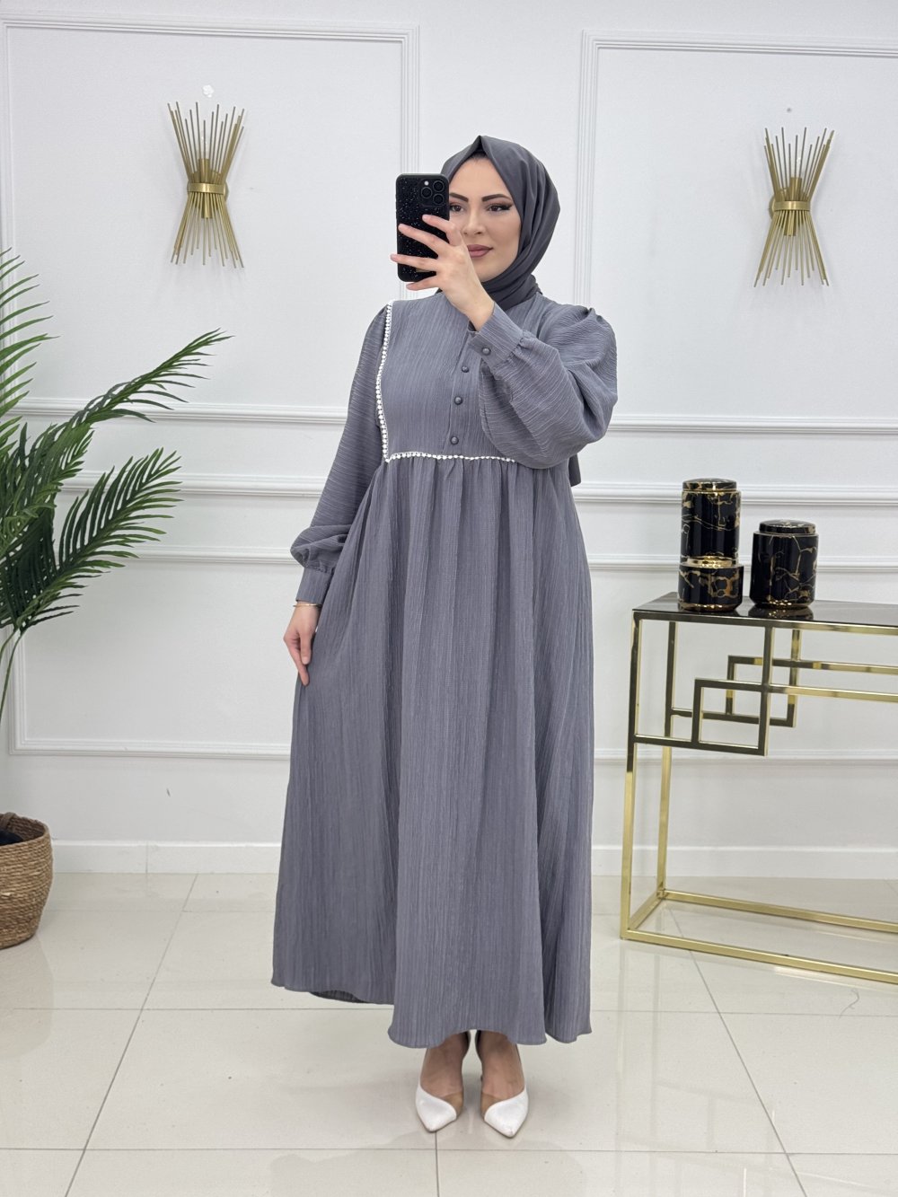 BİNNAZ MÜSLİN ELBİSE-ANTRASİT