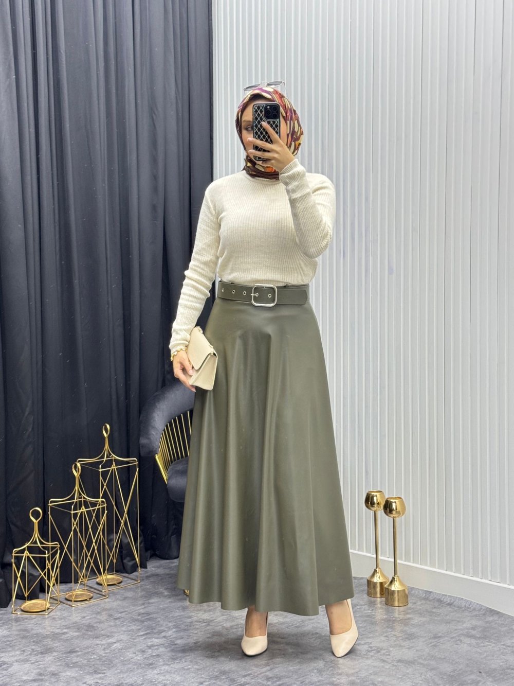 Ürünün Beden Aralığı ;etek 36-38-40-42-44 beden Ürünün Boyu :95 cm Ürünün Kumaşı ;suni deri kemer dahil fırfır yaka kazak Ürünün Kumaşı ;Trıko kumaş Ürünün Beden Aralığı ;standart 36/42 arası uyumlu Mankenin giydiği beden 38 bedendir Kışlık kullanıma uygundur Ürün renginde konsept çekimlerinden dolayı ton farklılığı olabilir