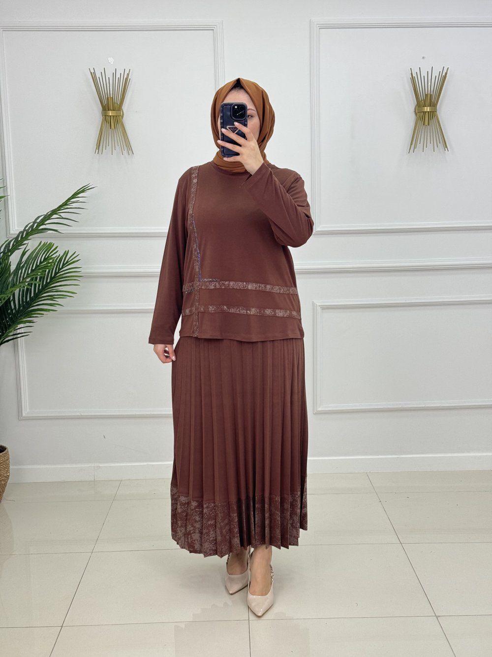 BİRGÜL ETEKLİ TAKIM-KAHVERENGİ